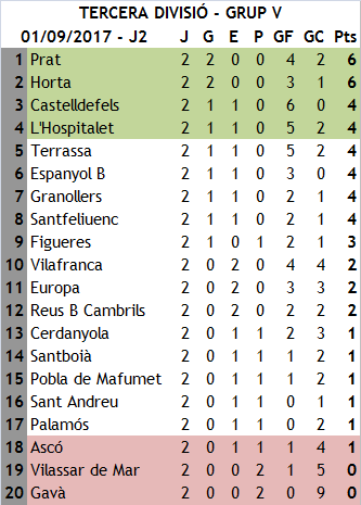 - L'Horta és l'únic equip que ha seguit l'estela del Prat al capdavant de la classificació després de dues jornades i ara buscarà el 9/9